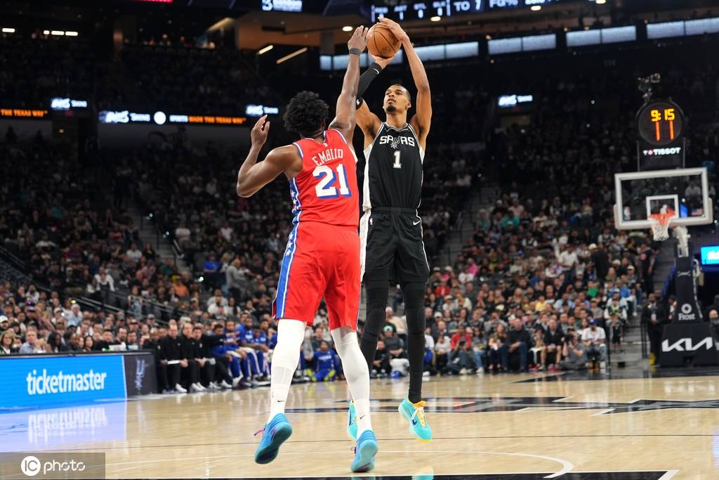 文班17分+伤退恩比德34+12 马刺大胜76人